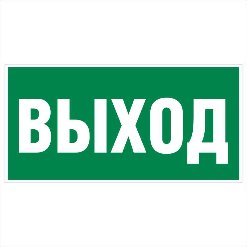 «Указатель выхода» — эвакуационный знак, который устанавливают над дверями эвакуационного выхода для их маркировки. Может использоваться в сочетании с комбинированными знаками, которые указывают, в каком направлении двигаться к выходу из опасной зоны. Предназначен для информирования людей о путях эвакуации при возникновении возгорания, в условиях ограниченной видимости или другой опасной для жизни и здоровья ситуации. Его размещение в различных учреждениях, организациях и на предприятиях облегчает ориентирование в здании.