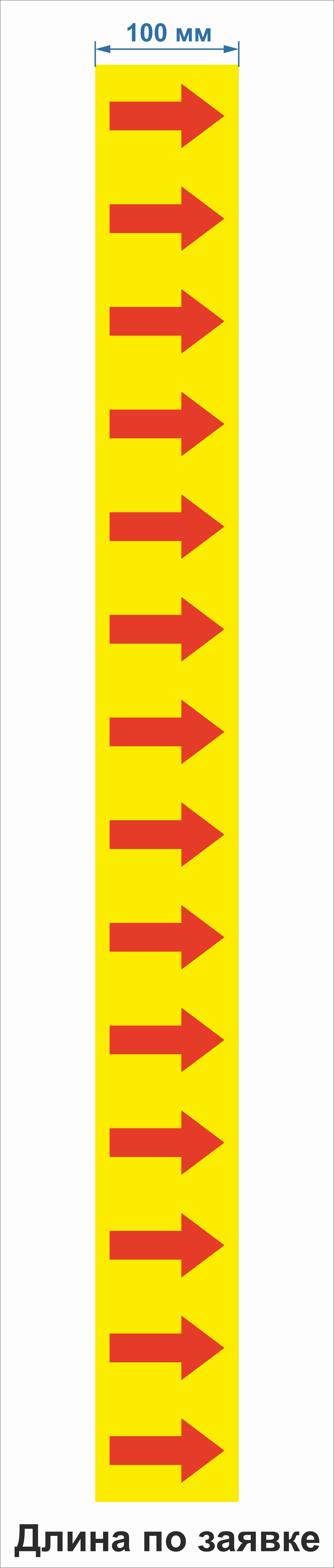 Размер: ширина: 100мм., длина: 16,5 мм.,Плёнка самоклеящаяся ПВХ, цвет фона желтый, цвет стрелки красный