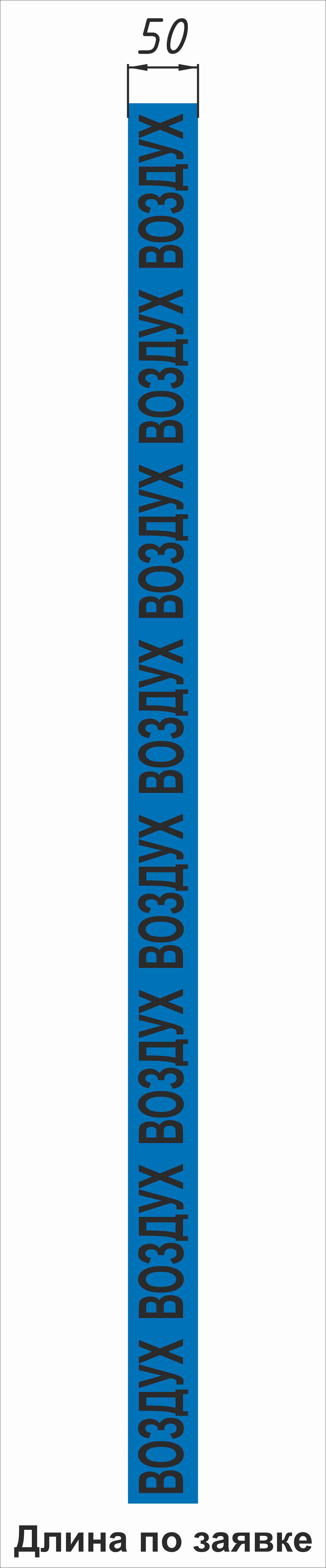 Размер: ширина: 50мм., длина: 50м.,Плёнка самоклеящаяся ПВХ, цвет фона голубой, цвет букв черный ВОЗДУХ