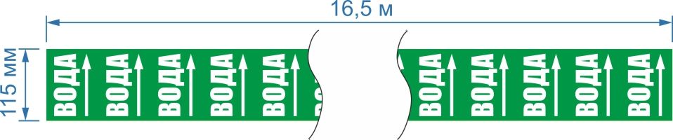 Опознавательная маркировочная лента зеленая с белой надписью Вода и стрелкой 115мм x 16,5мКод: ЦБ-00019223