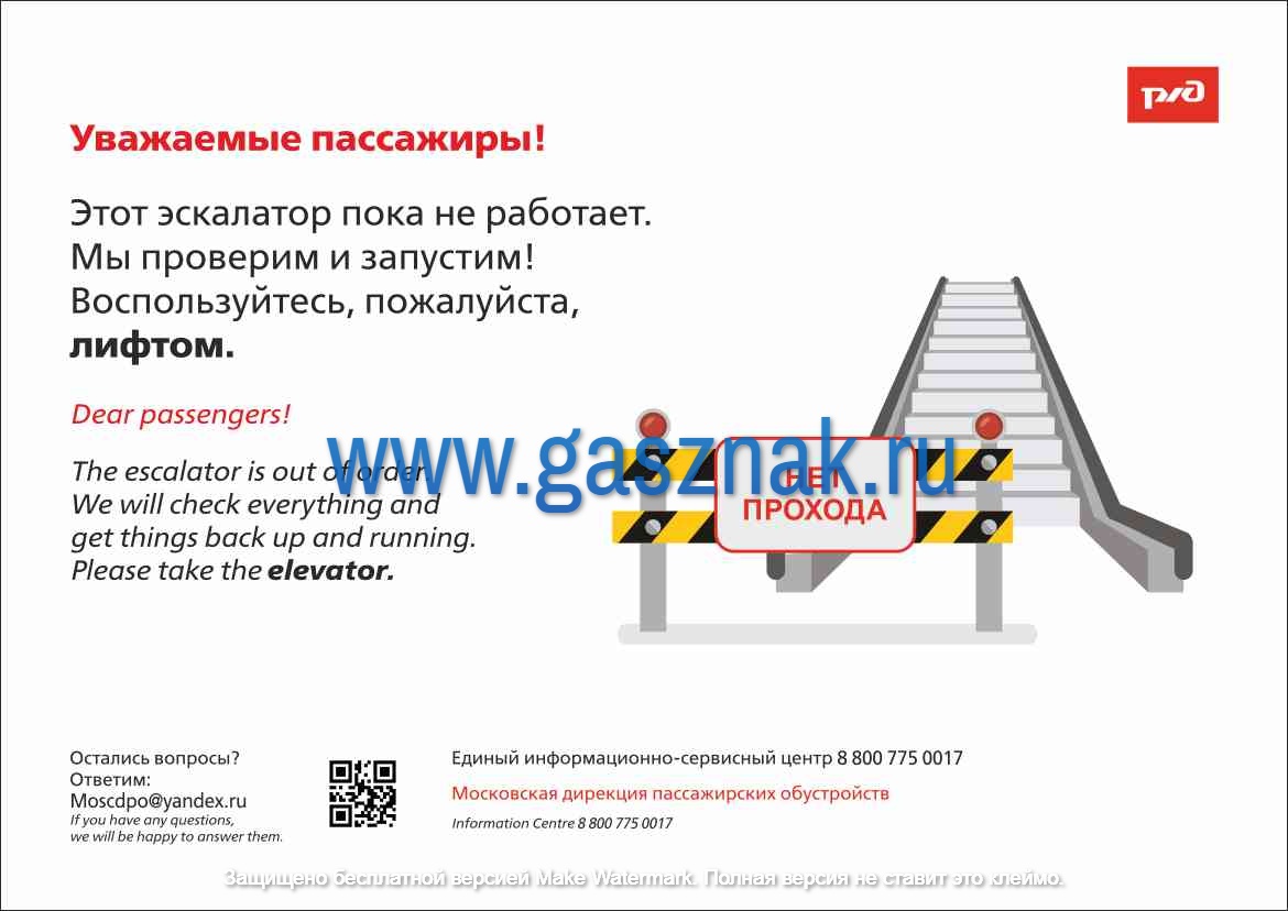Информационный плакат - Уважаемые пассажиры! Этот эскалатор пока не работает