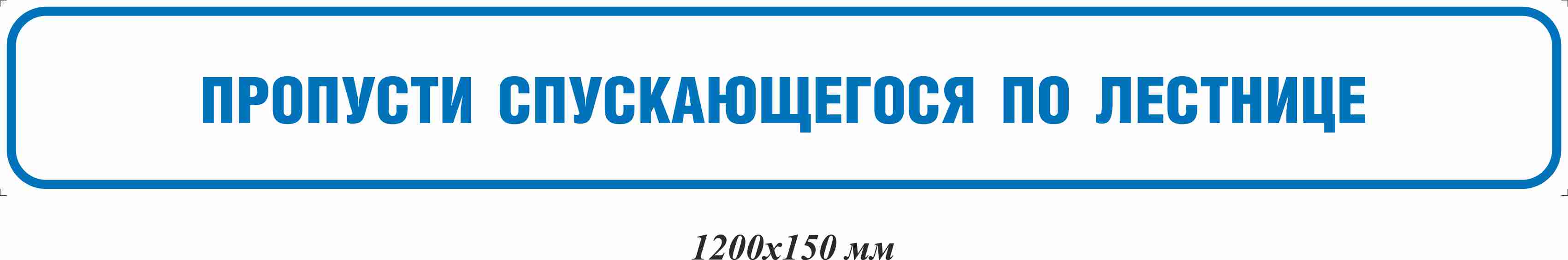 Наклейка информационная на ступени Пропусти спускающегося по лестнице 1200х150 мм, материал пленка ПВХ самоклеящаяся, форма прямоугольная края закругленные, цвет белый/синийАрт. IT-1200x150-PS1