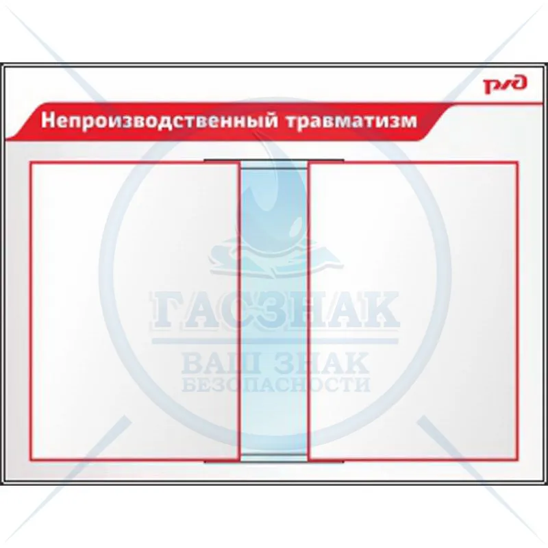 Стенд Промышленная безопасность РЖД, 8 объемных кармана А4 вертик. (1150х1100; Пластик ПВХ 4 мм, алюминиевый профиль; )