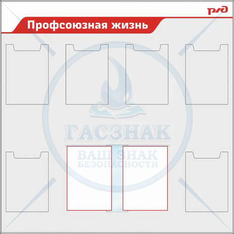 Стенды по охране труда для ОАО РЖД, пластиковый с алюминивым профилем, 5 объёмных карманов А4,1 карман А3 (Пластик ПВХ 4 мм; 1000х1000)
