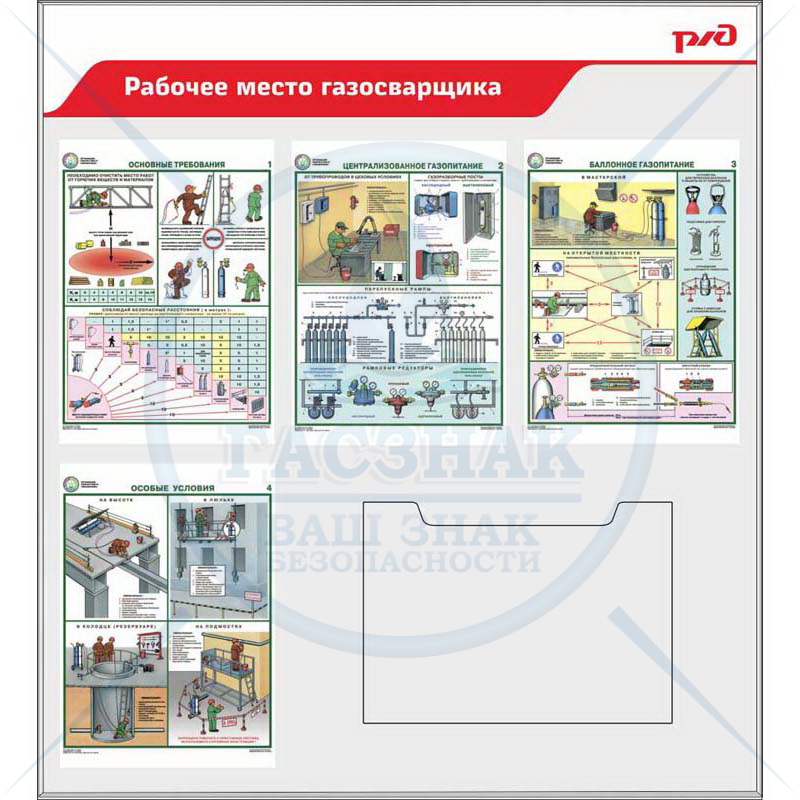 Стенд Уголок по технике безопасности РЖД, 1 карман А3 гор, 4 А4 объемн., 6 карманов А4 пл. (1650х1100; Пластик ПВХ 4 мм, алюминиевый профиль; )