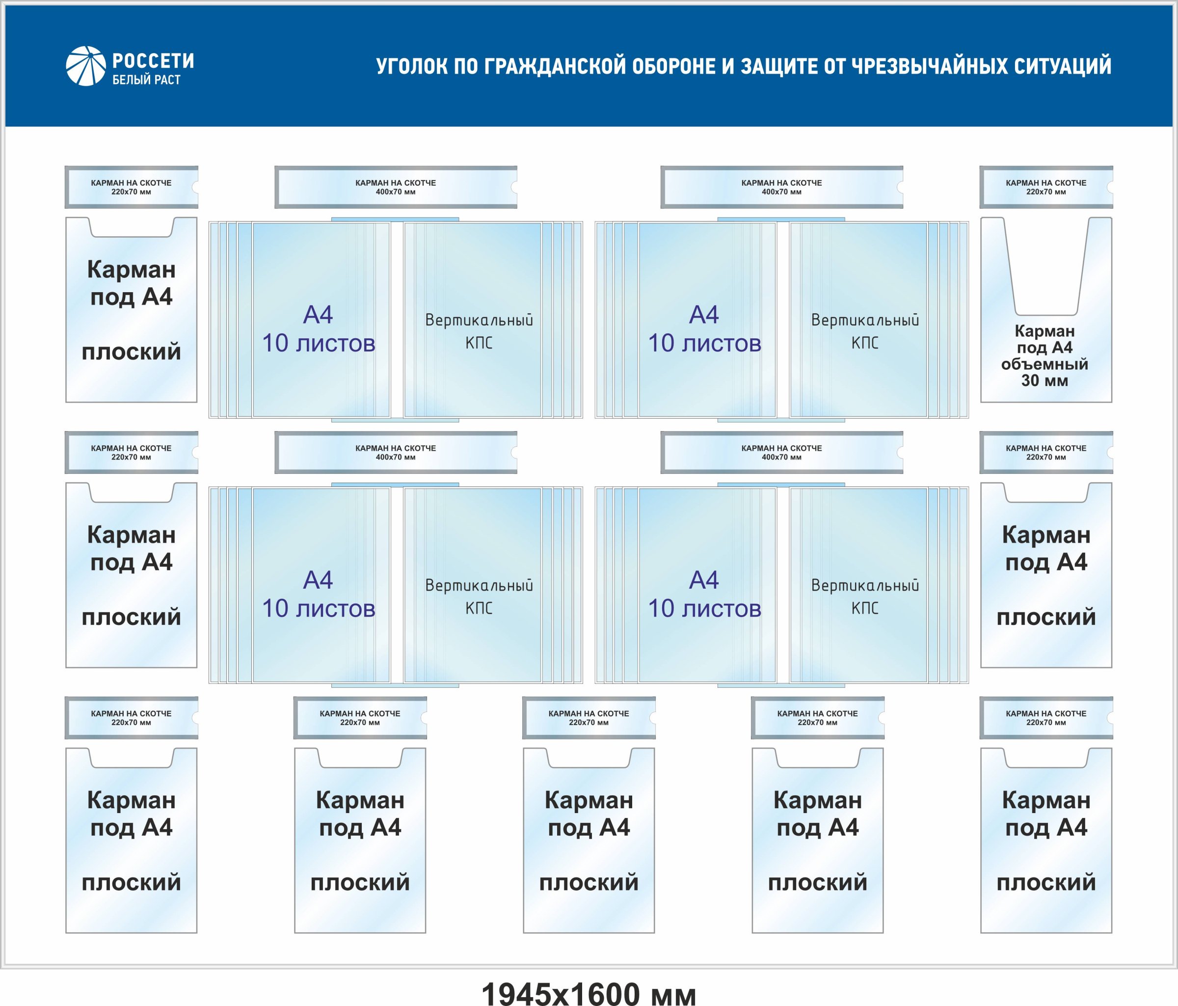 Карманы 220х70 мм 9шт, карманы 400х70 мм 4шт - на скотч