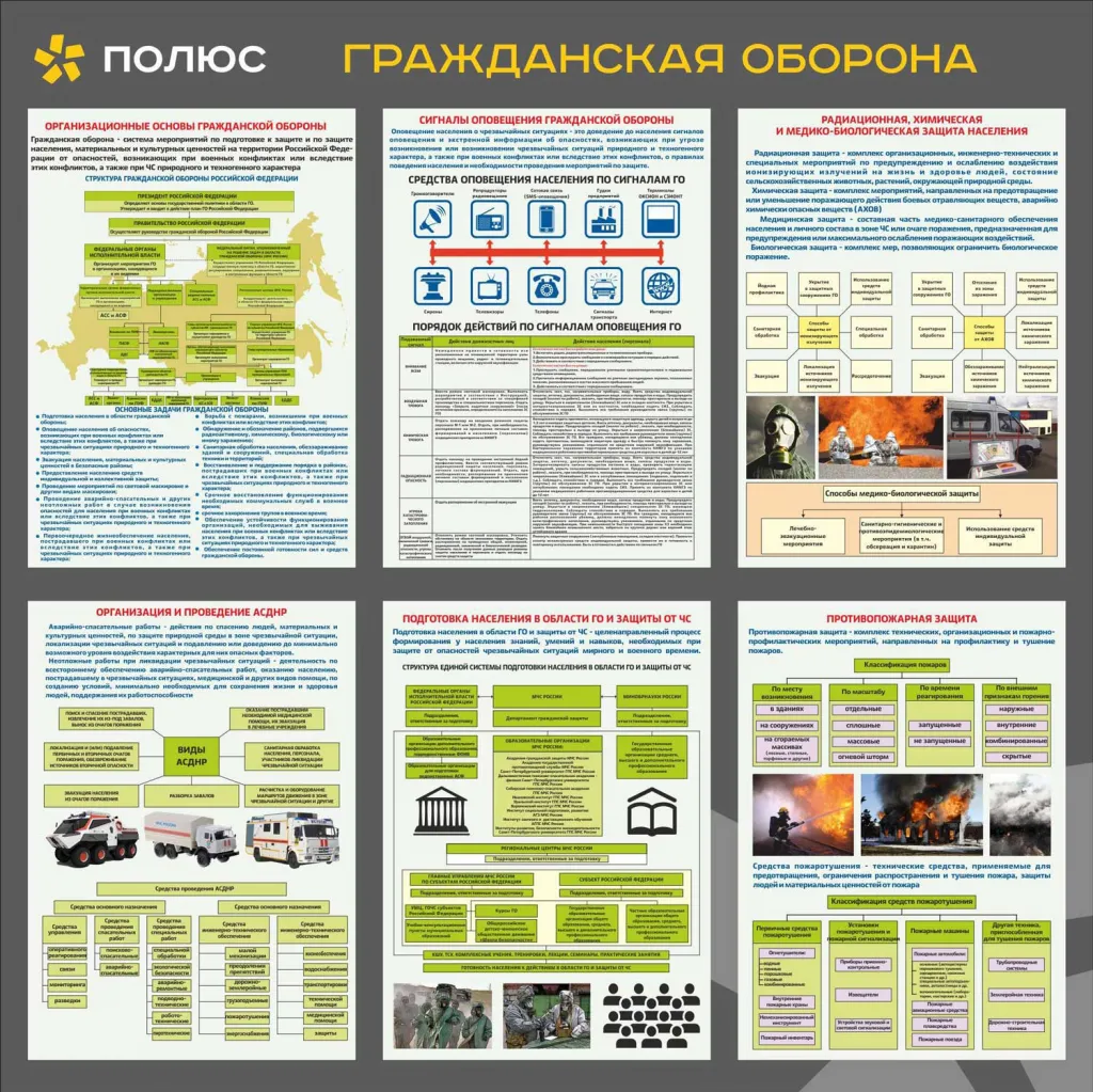Стенд Гражданская оборона, 3 плаката А2, 5 карманов А4 вертикальный плоский (1400х1200; Пластик ПВХ 4 мм, пластиковый профиль; )