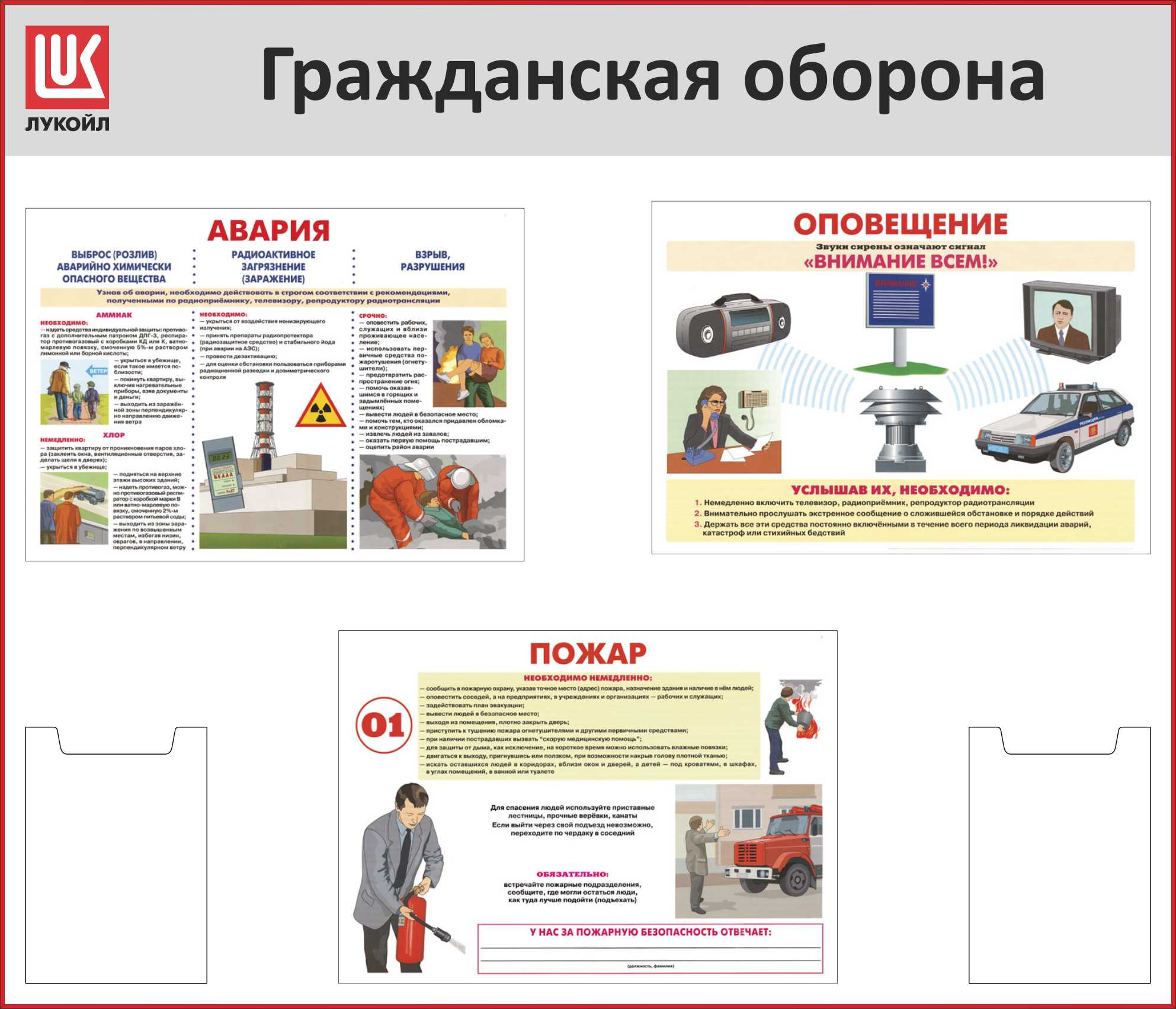 Стенд Гражданская оборона и действия в чрезвычайных ситуациях, 9 плакатов А3, Логотип (1500х1200; Пластик ПВХ 4 мм, алюминиевый профиль)