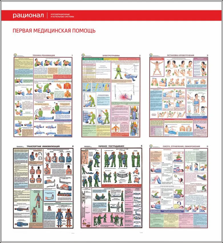 Стенд «Первая медицинская помощь» 6 плакатов А3 (1100х1100; Пластик ПВХ 4 мм, алюминиевый профиль;)
