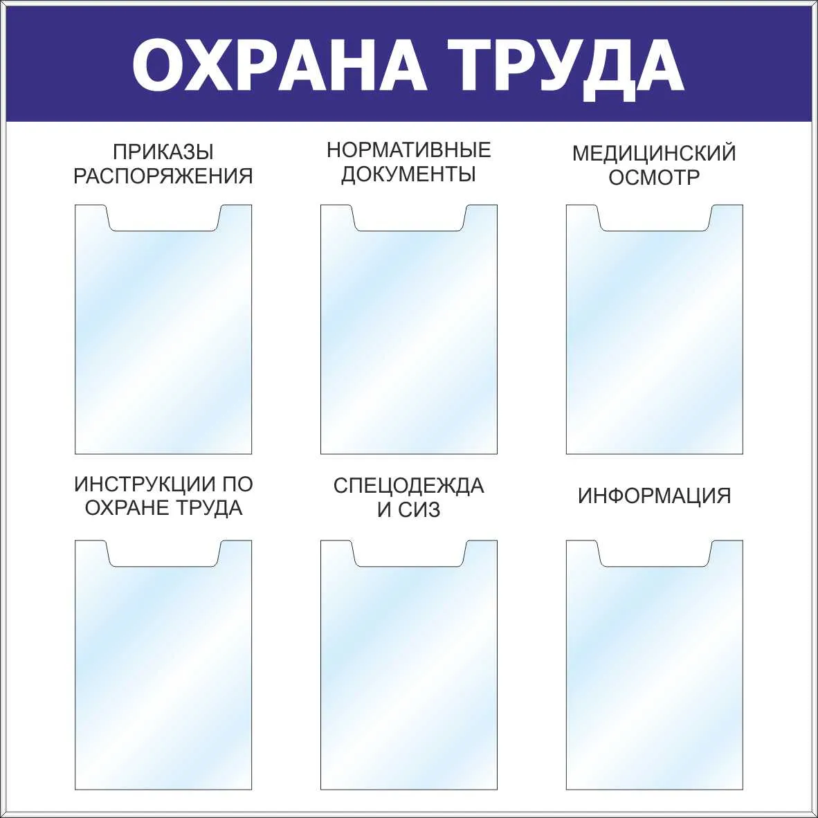 Стенд Охрана труда (1000х1000; перекидная система А4 на 10 рамок, А4 - 4 кармана объемных; Пластик ПВХ 4 мм, алюминиевый профиль)