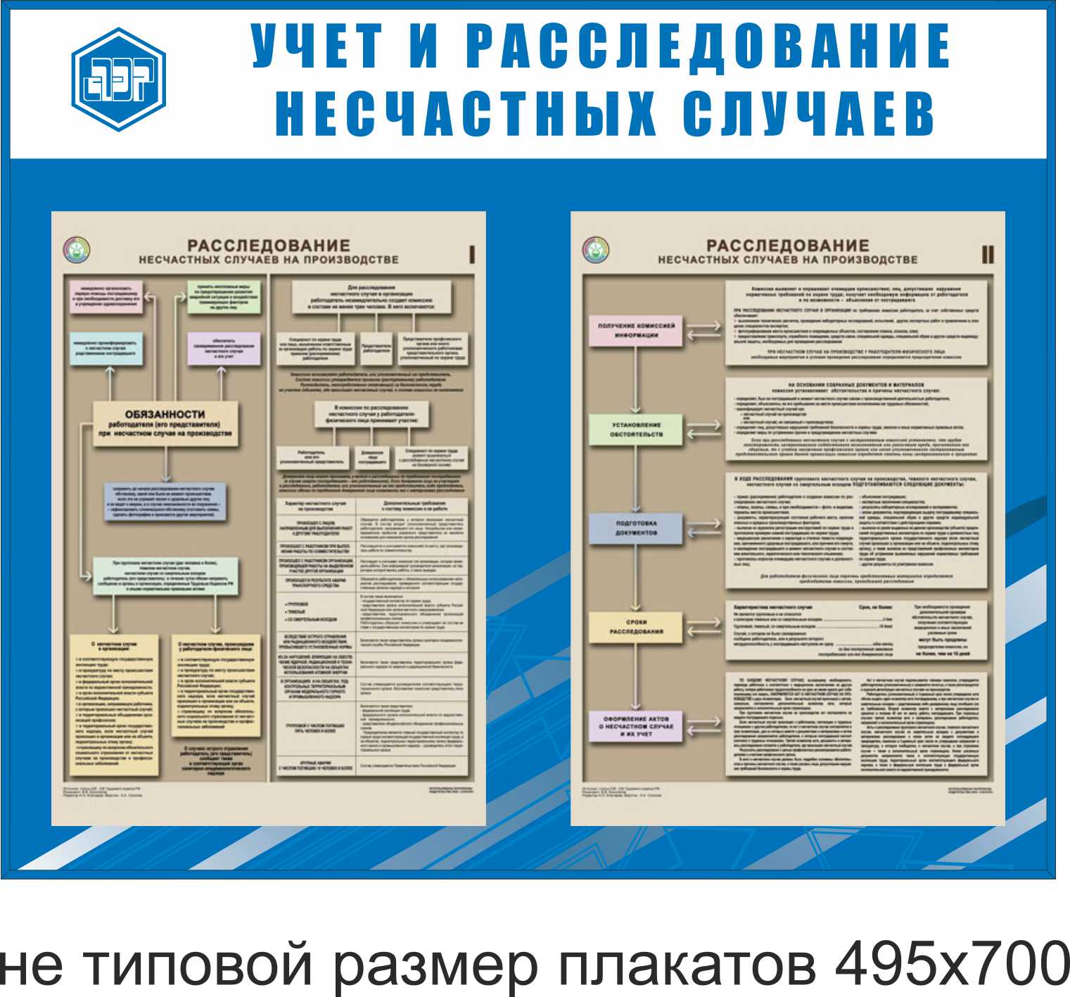 Стенд Охрана труда (учет и расследование несчастных случаев), ламинация защитной пленкой 25мк, Логотип (1200х1000; Пластик ПВХ 4 мм, пластиковый профиль; Пластиковый) (полноцветная широкоформатная печать), Расследование несчастного случая на производстве, 1 шт., ПЛВ16-2 (Ламинированная бумага; А2)-1шт
