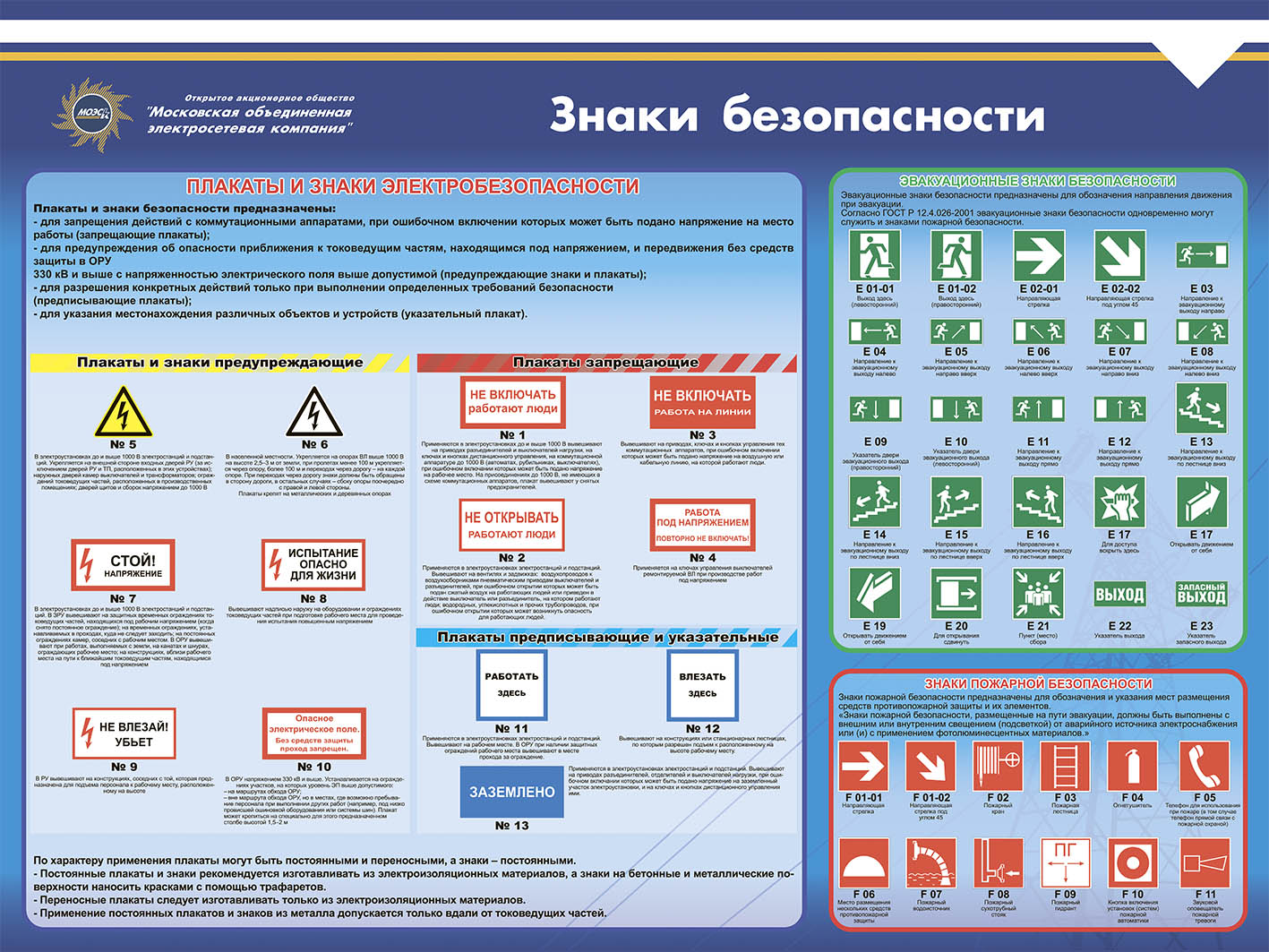 Стенд Знаки безопасности, Логотип (1600х1000; Пластик ПВХ 4 мм; Алюминиевый профиль) МОЭСК