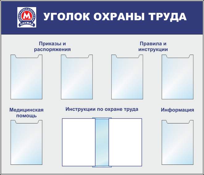 Стенд Уголок охраны труда (Метрополитен) алюм.профиль, карман А4х6 шт плоские, перекидная система на 5 рам (Пластик ПВХ 4 мм; 1400х1200)