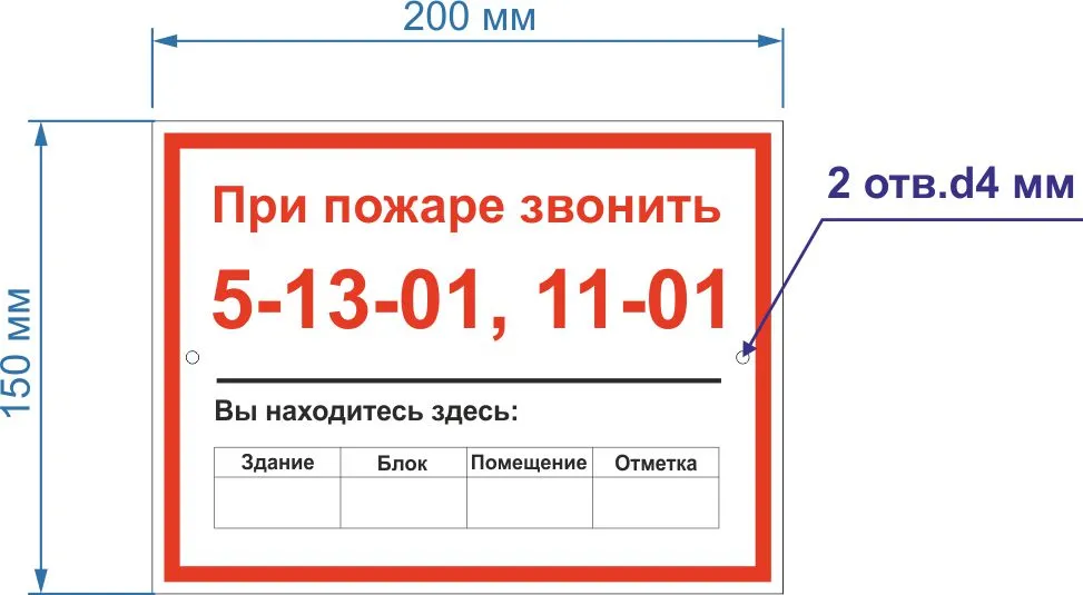 Табличка вызова пожарной охраны
