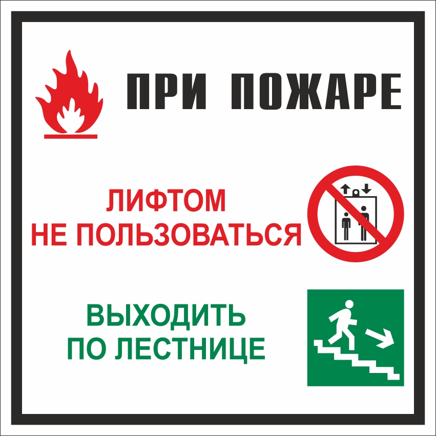 При пожаре лифтом не пользоваться! Выходить по лестнице