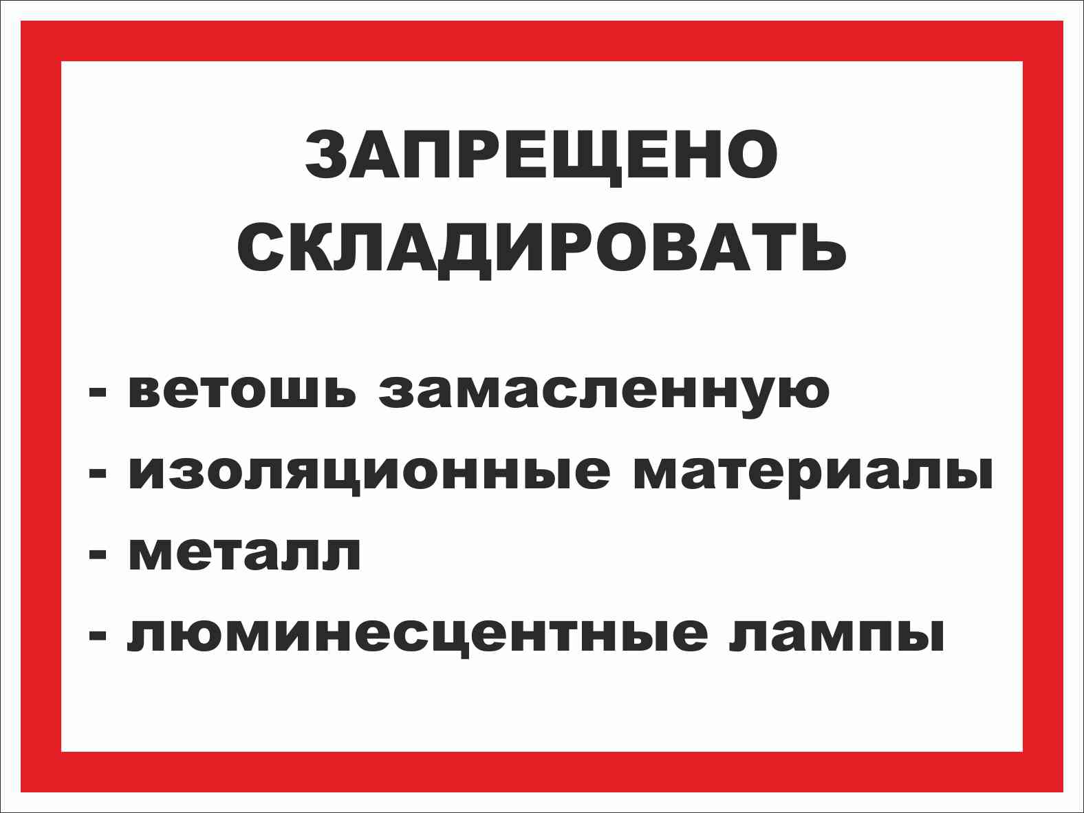 Табличка информационная Запрещено складировать