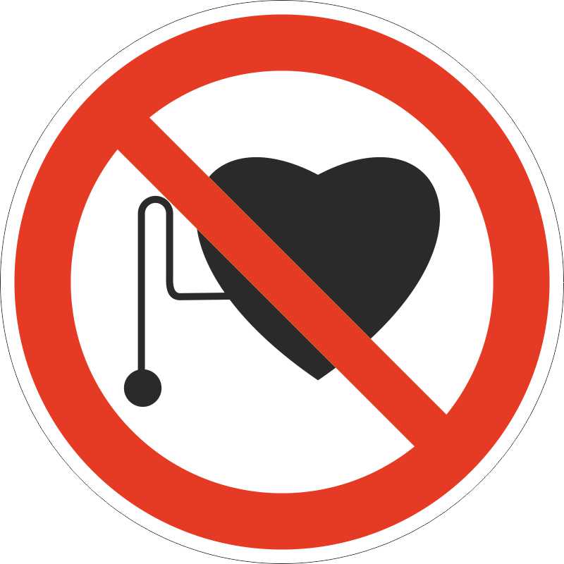 Запрещается работа (присутствие) людей со стимуляторами сердечной деятельности