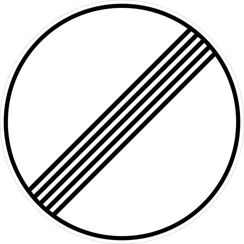 «Конец всех ограничений» — один из знаков, которые относятся к числу запрещающих, хотя не вводят запрет. Используется для отмены действия всех введенных до этого запретов: минимальной дистанции, обгона всем видам и только грузовому транспорту, максимальной скорости, остановки, стоянки и подачи звукового сигнала. Размещается в местах, где запрещающие знаки перестают действовать, как правило, на дорогах вне населенных пунктов, где нет перекрестка, который снимает наложенное ограничение.