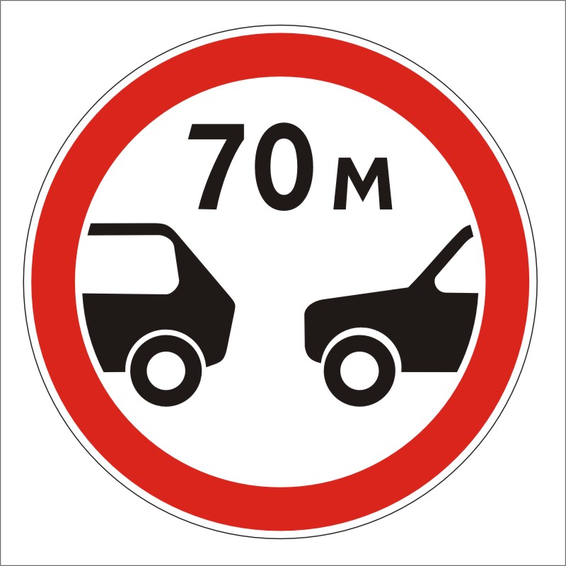 «Ограничение минимальной дистанции» входит в категорию запрещающих знаков. Указывает на недопустимость движения с меньшей дистанцией между двумя транспортными средствами, чем цифра на знаке. Запрет действует только на том участке, где размещен знак. Обычно это места расположения пунктов пропуска, постов ДПС, а также опасные участки дороги, например, мосты, путепроводы и т. п. Может использоваться с табличкой, предупреждающей водителя, что запрет начнет действовать через определенное расстояние или имеет действие только на протяжении указанного расстояния.